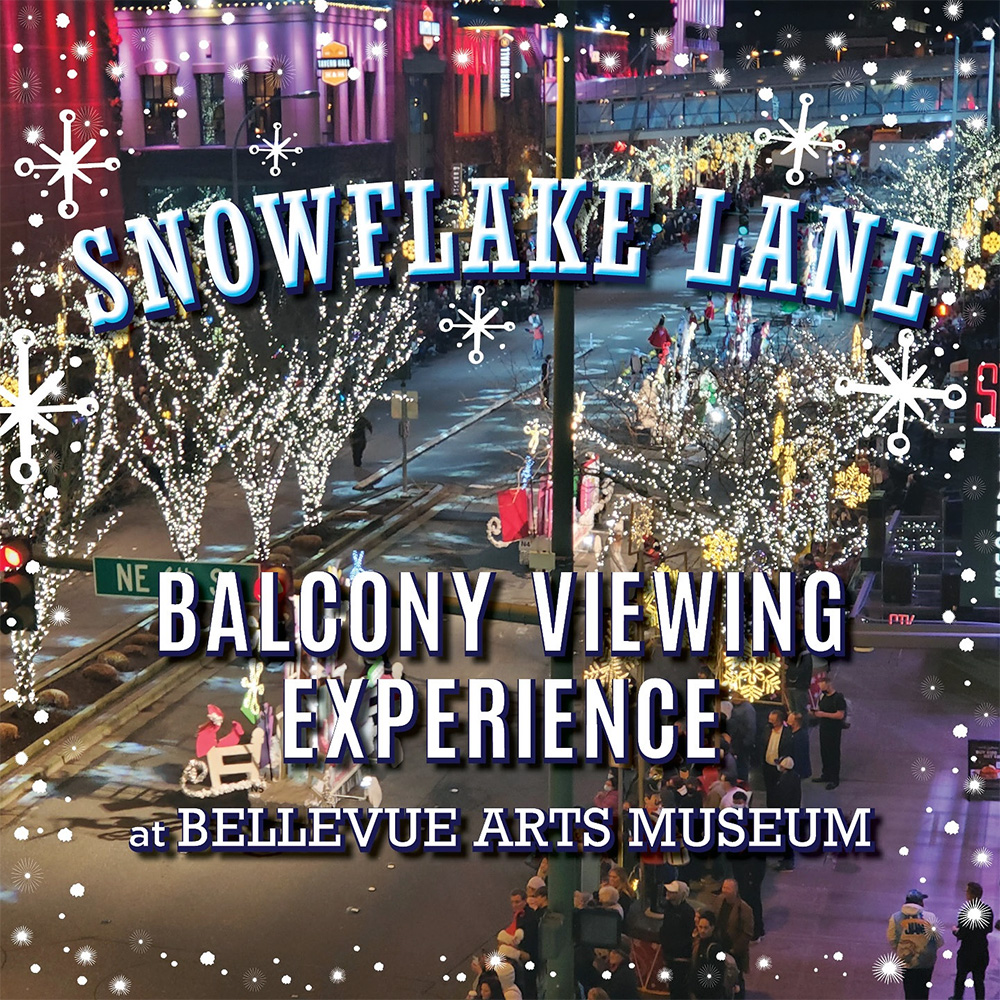 Reserve your private Snowflake Lane parade viewing! Elevate your holiday traditions with up to 20 of your closest friends, family, or colleagues with an unparalleled view from the Bellevue Arts Museum 3rd floor balcony. This special experience is perfect for family or corporate gatherings!