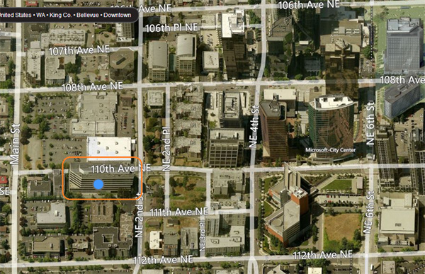 We spotted the Atrium Place undergoing some renovation in late summer most likely in preparation for the December office move. 110 Atrium Place, as it's officially called, is located at the corner of 110th Ave NE and NE 2nd St, just east of the Toys R Us. The new Bellevue office is just a few blocks away from other notable company offices including Expedia, eBay, inome and Microsoft.