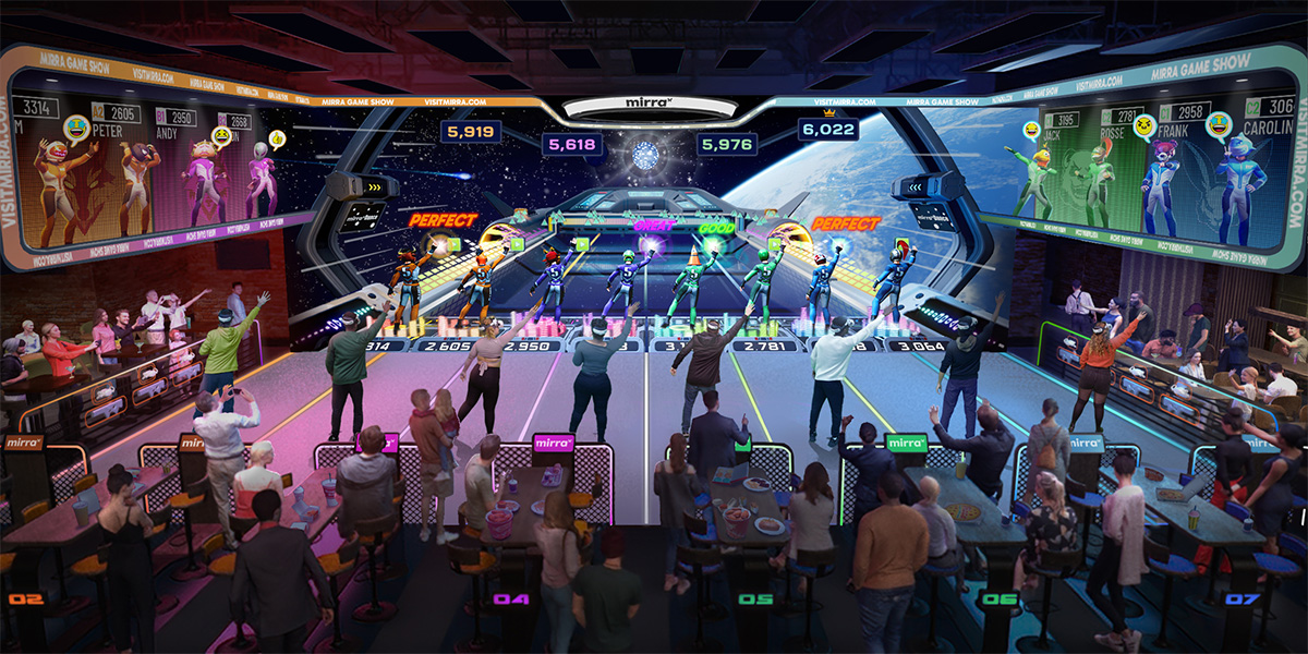 Mirra designs, programs and develops all of its games. It will launch with tech-immersed party games in which players can dance, hunttreasure, dodge lasers, hit jackpots, play hockey or match bubbles by throwing balls and hitting targets. Games are designed for a variety of skill levels and players can play 60-minute sessions, with teams of up to eight, playing against other teams in the arena.