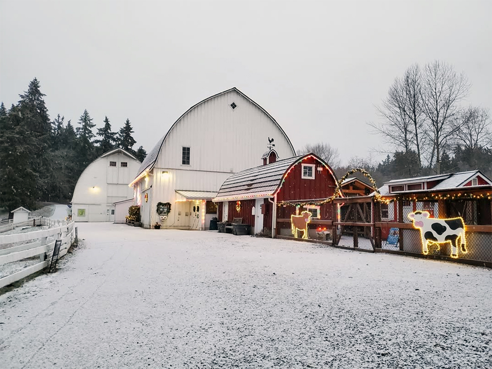 Join Kelsey Creek Farm staff in turning on the barn lights for the holiday season.