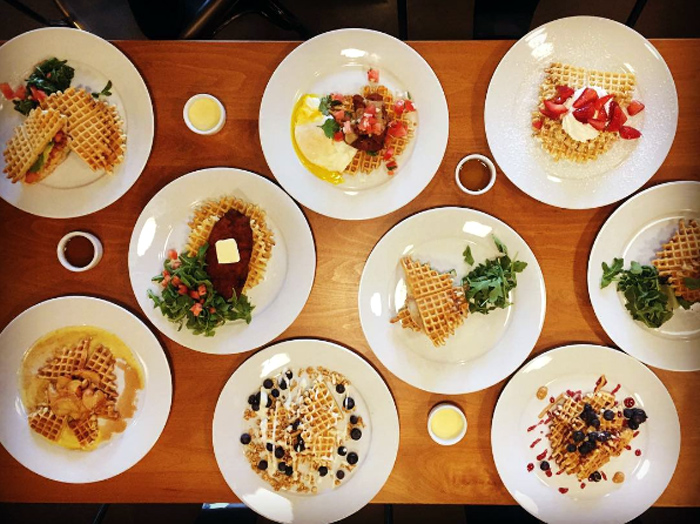 The menu includes sweet classics like strawberries & whipped cream, as well as house-made recipes like the Cinnamon Waffle with cinnamon apples, creme anglaise, and powdered sugar. Savory waffle choices are proving to be popular as well, including fried chicken breast & 100% pure Vermont maple syrup, the BLT, and the Chorizo Waffle with scrambled egg, chorizo, Jack cheese, and pico de gallo.
