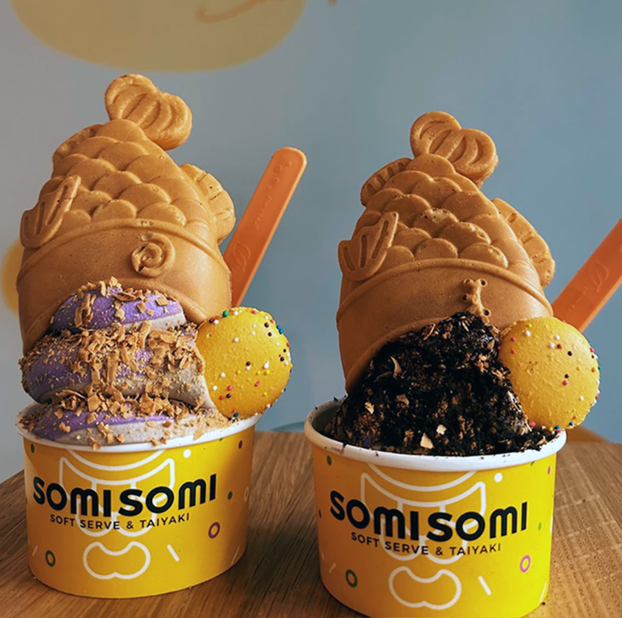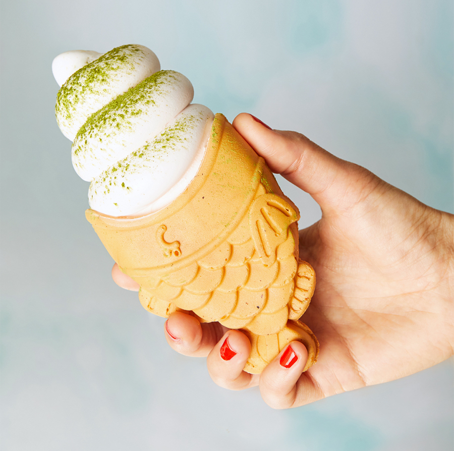 Tags: soft serve, taiyaki, ube ice cream, matcha