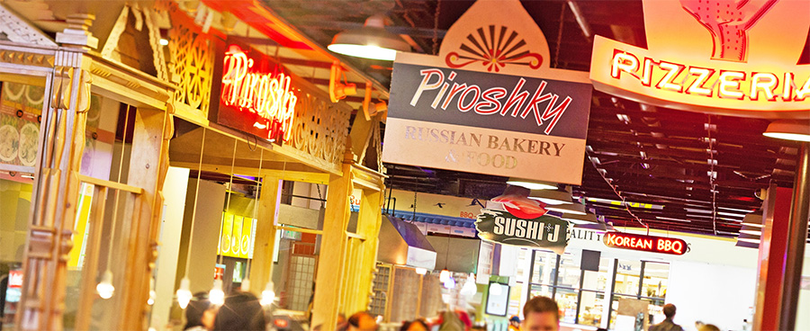 The Public Market international Restaurants at Crossroads Bellevue offer fast, affordable food in a relaxed food hall-style atmosphere. Whether you're a fan of phad thai, French pastries, Laotian hot pot, tikka masala, piroshky, carne asada, babaganush or bibimbap, the variety of choices are sure to please every appetite.
